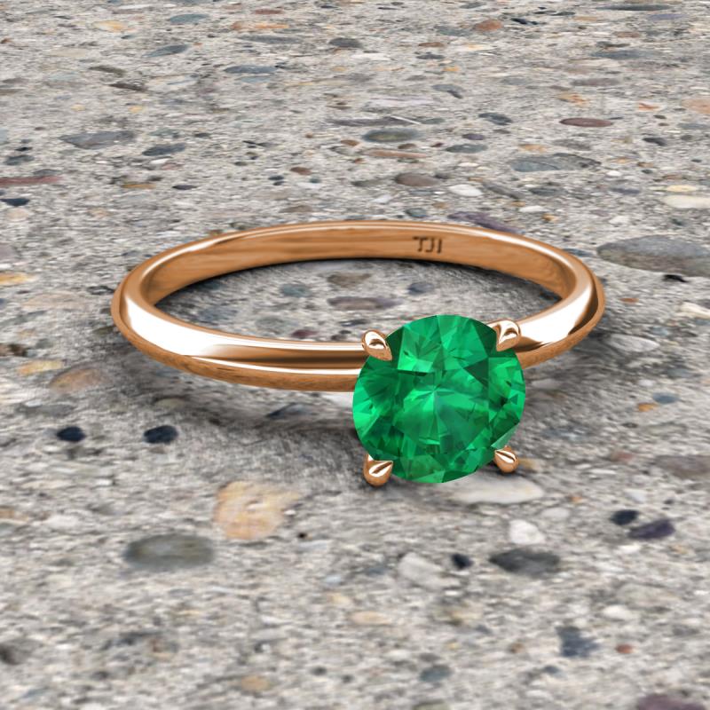 Round Emerald 0.72 ctw Four Prong Knife Edge Women Solitaire Engagement Ring 18K Rose Gold More Details ...