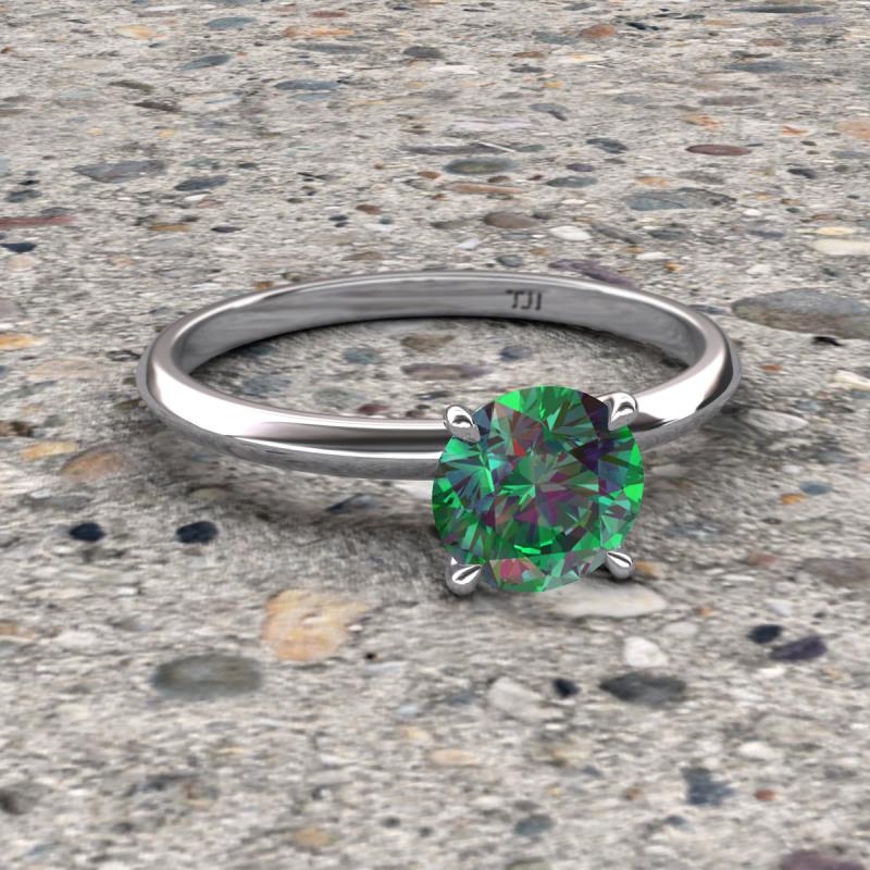 Round Lab Created Alexandrite 1.00 ctw Four Prong Knife Edge Women Solitaire Engagement Ring 14K White Gold More Details ...