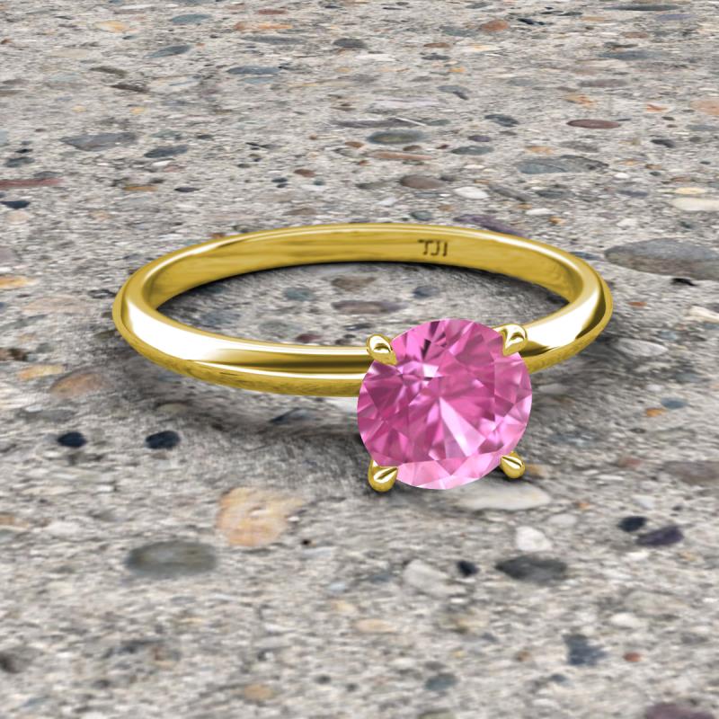 Round Lab Created Pink Sapphire 0.95 ctw Four Prong Knife Edge Women Solitaire Engagement Ring 18K Yellow Gold More Details ...