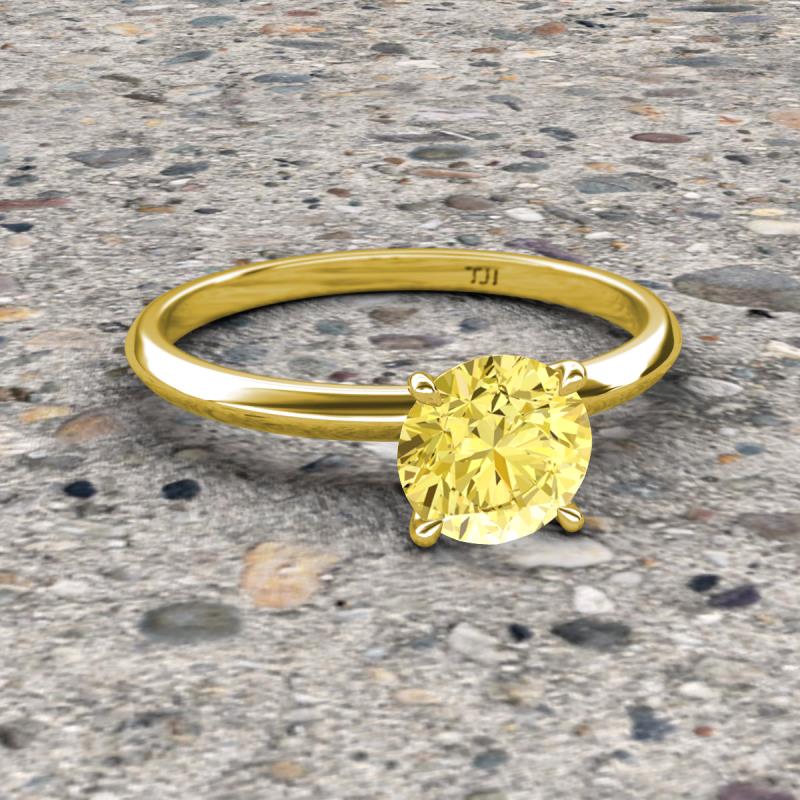 Prepare your eyes for the luscious visual feast in this magnificient Round Created Yellow Sapphire engagement ring beautifully crafted in 14K Yellow Gold and held in tiger claw setting that adds the perfect touch to this timeless beauty.