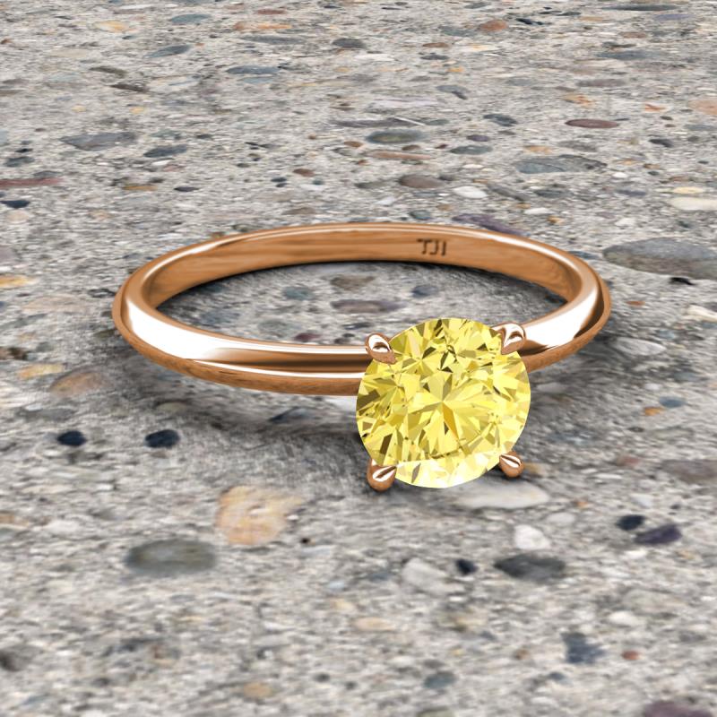 Prepare your eyes for the luscious visual feast in this magnificient Round Created Yellow Sapphire engagement ring beautifully crafted in 14K Rose Gold and held in tiger claw setting that adds the perfect touch to this timeless beauty.