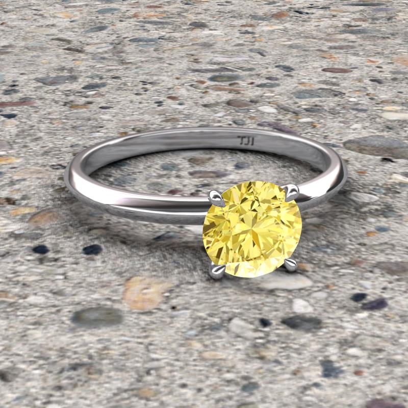 Round Lab Created Yellow Sapphire 0.95 ctw Four Prong Knife Edge Women Solitaire Engagement Ring Platinum More Details ...