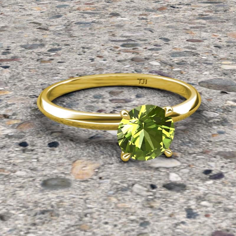 Round Peridot 1.10 ctw Four Prong Knife Edge Women Solitaire Engagement Ring 14K Yellow Gold More Details ...