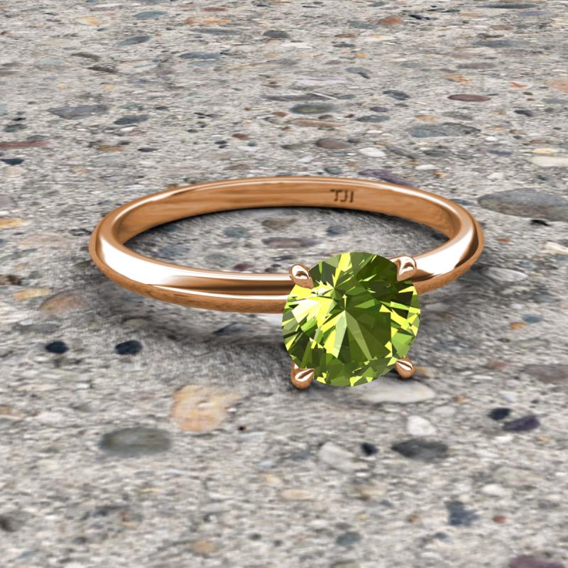 Round Peridot 1.10 ctw Four Prong Knife Edge Women Solitaire Engagement Ring 14K Rose Gold More Details ...