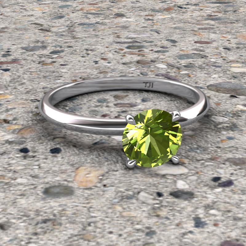 Round Peridot 1.10 ctw Four Prong Knife Edge Women Solitaire Engagement Ring Platinum More Details ...