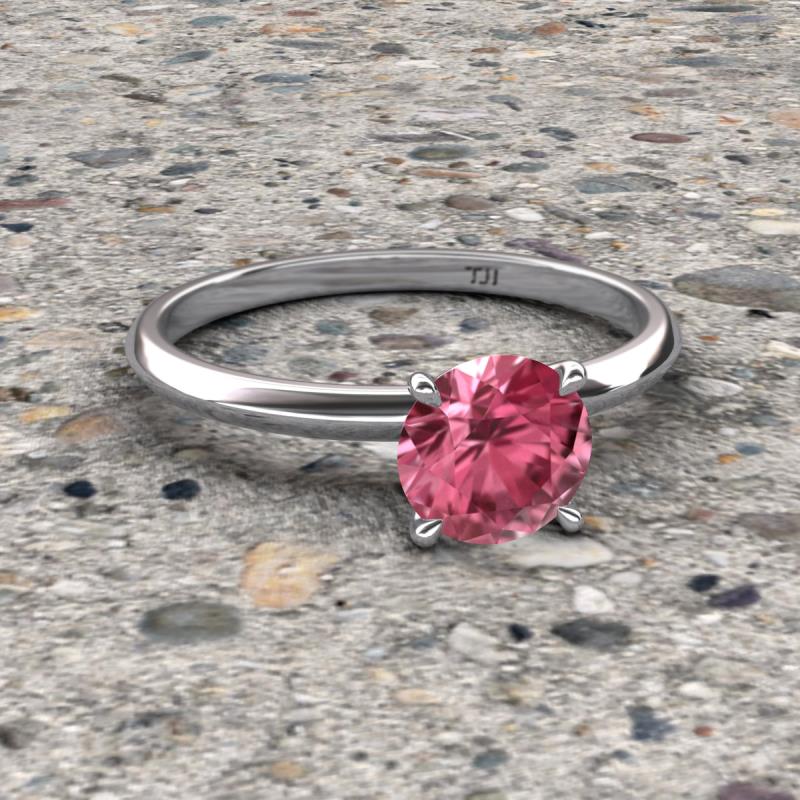 Round Pink Tourmaline 0.87 ctw Four Prong Knife Edge Women Solitaire Engagement Ring 14K White Gold More Details ...
