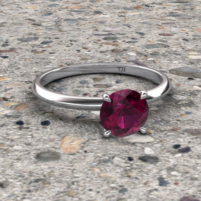 Round Rhodolite Garnet 1.00 ctw Four Prong Knife Edge Women Solitaire Engagement Ring 14K White Gold More Details ...
