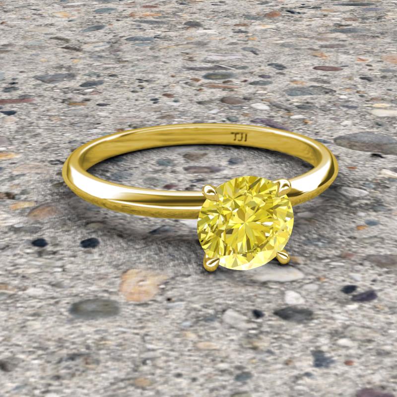 Prepare your eyes for the luscious visual feast in this magnificient Round Yellow Diamond engagement ring beautifully crafted in 14K Yellow Gold and held in tiger claw setting that adds the perfect touch to this timeless beauty.