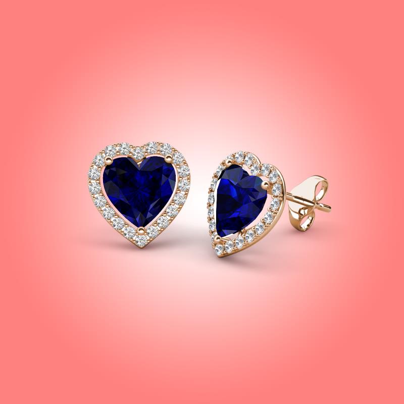 Heart Created Blue Sapphire and Round Natural Diamond 3.14 ctw Women Heart Halo Stud Earrings 14K Rose Gold More Details ...