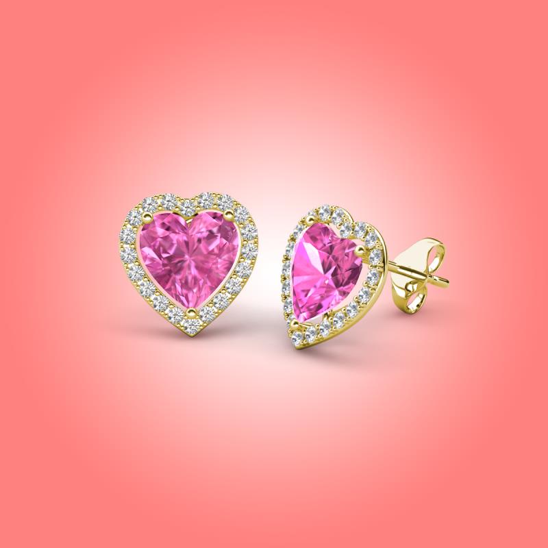 Heart Created Pink Sapphire and Round Natural Diamond 3.24 ctw Women Heart Halo Stud Earrings 14K Yellow Gold More Details ...