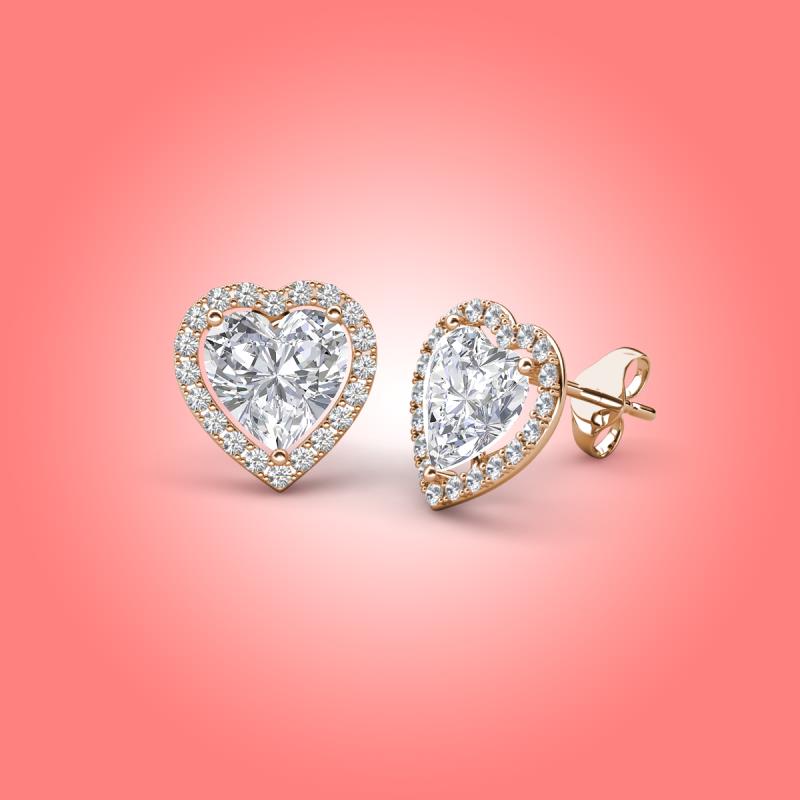 Heart Created White Sapphire and Round Natural Diamond 2.84 ctw Women Heart Halo Stud Earrings 14K Rose Gold More Details ...