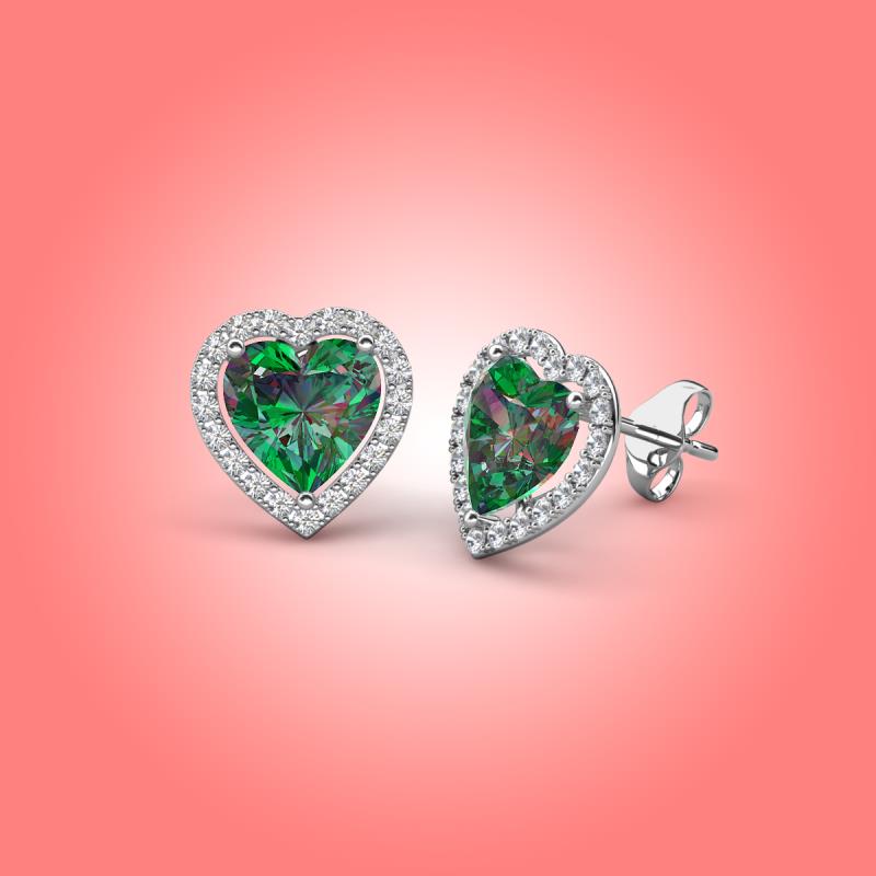 The beautiful pair of heart shaped stud earrings of 3.14 ctw with elegant center Lab Created Alexandrite surrounded with 40 sparkilng Round Natural Diamond in halo style with post and puchback backfindings & safely secured in prong settings, symbolizes the Love & Affection for your loved ones.