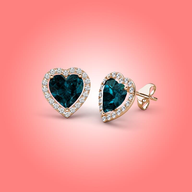 Heart London Blue Topaz and Round Natural Diamond 3.44 ctw Women Heart Halo Stud Earrings 14K Rose Gold More Details ...