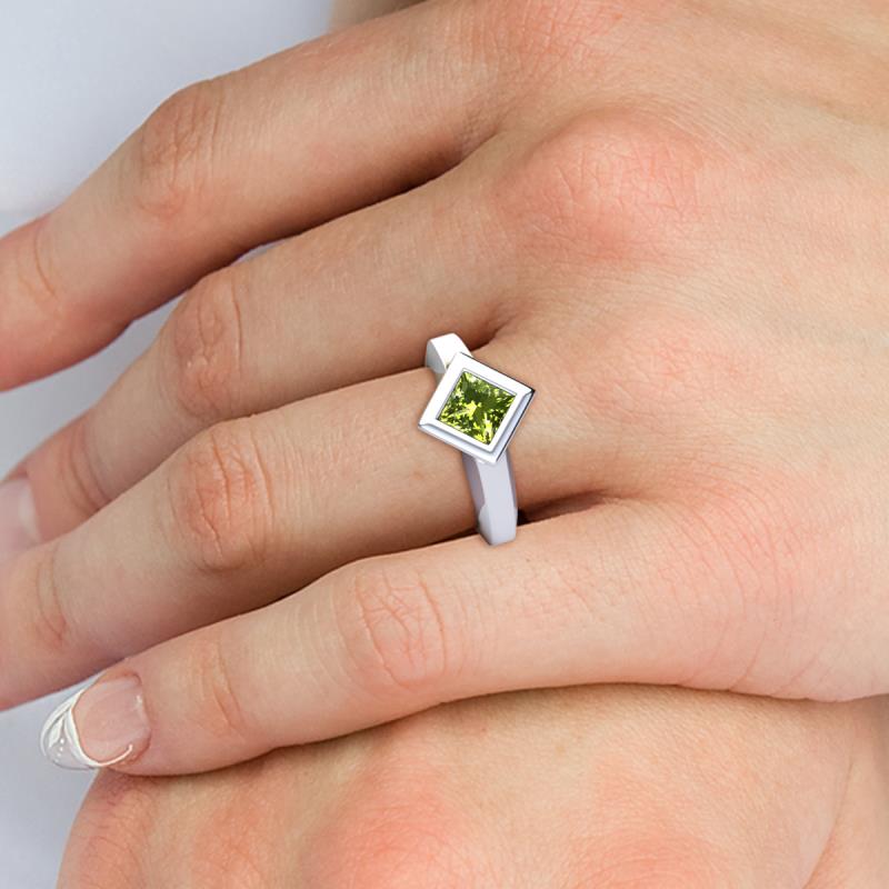 This Solitaire Ring have Princess Cut Peridot surrounded elegantly by bezel setting making it more Graceful in its Simplicity.