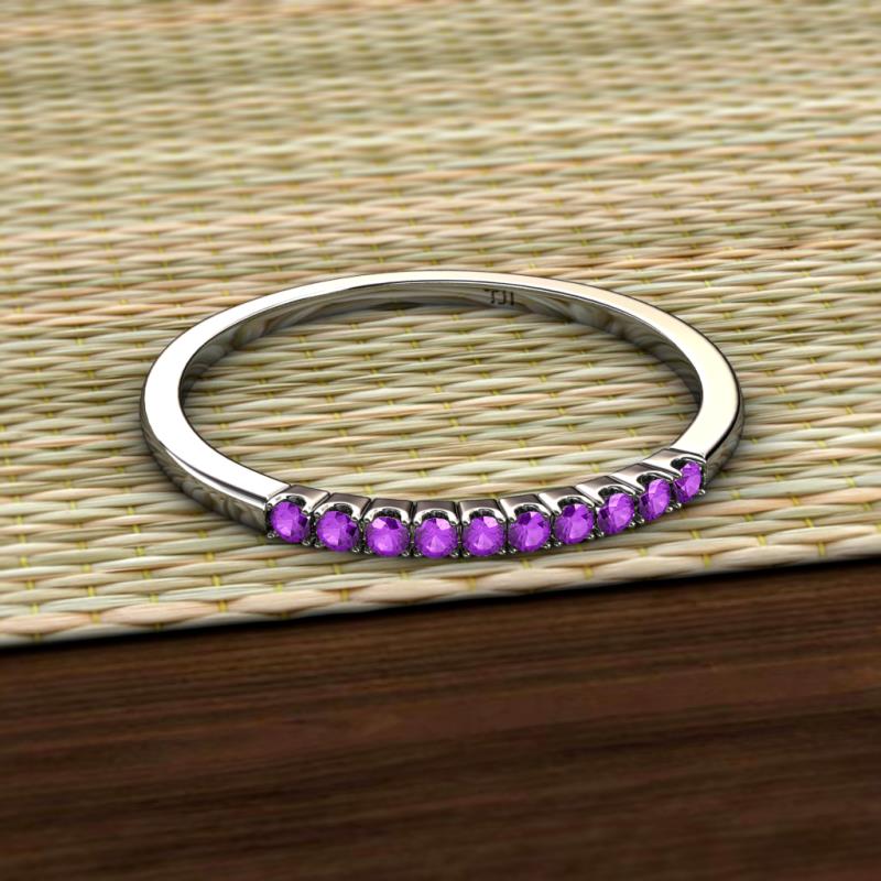 This is a Gorgeous French Set 10 Stone Wedding Band with Series of Glittering Round Amethyst that will make your Wedding Vow Special & Memorable.