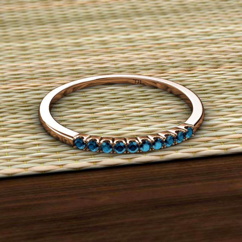 French Set Blue Diamond 10 Stone Womens Wedding Band Stackable 0.30 ctw 18K Rose Gold More Details ...
