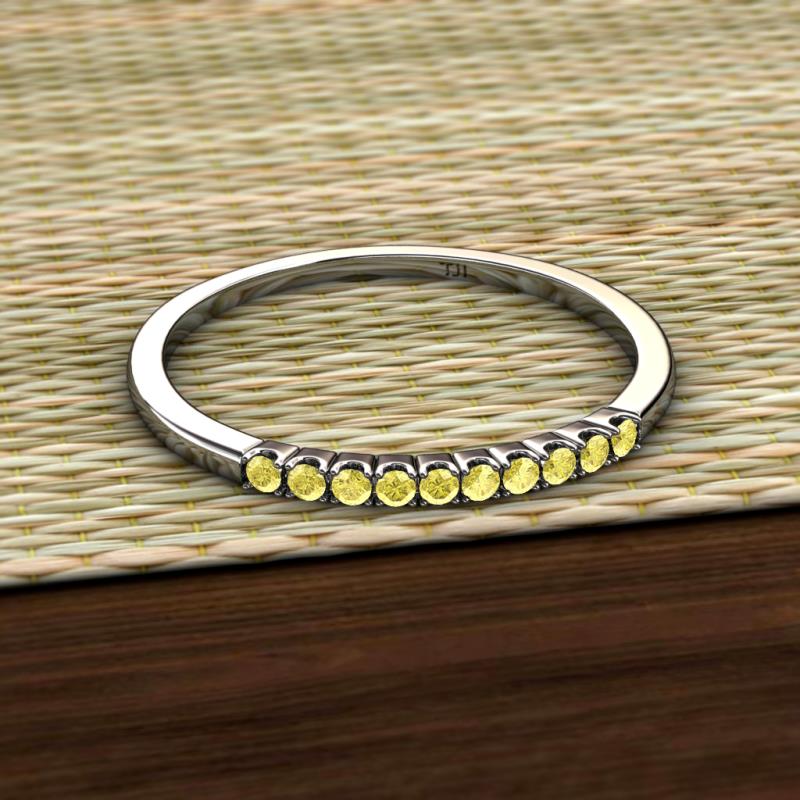 French Set Yellow Sapphire 10 Stone Womens Wedding Band Stackable 0.32 ctw 925 Sterling Silver More Details ...