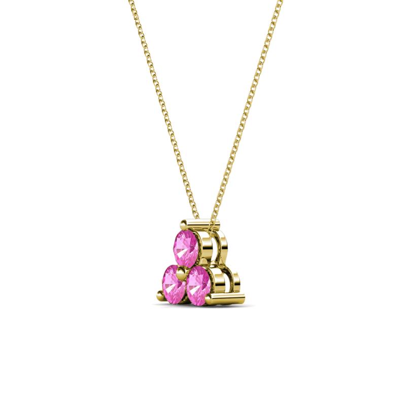 Round Pink Sapphire Three Stone Pendant 0.51 ctw in 14K Yellow Gold.Included 16 Inches 14K Yellow Gold Chain. More Details ...