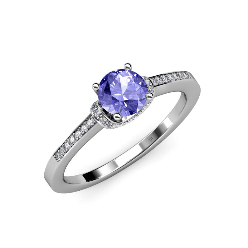 Honour your love with this unforgettable Engagement Ring where Center Tanzanite sits pretty along twisting strings of Diamonds flanked by attitional Diamonds completing this mesmerizing design.