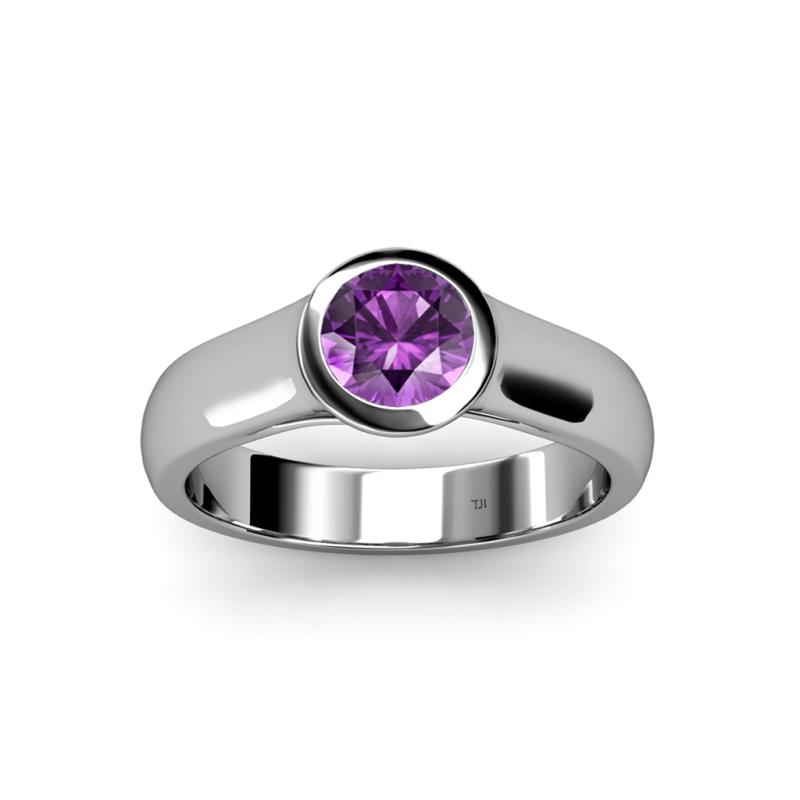 Amethyst Womens Bezel Set Solitaire Engagement Ring 3/4 ct 18K White Gold More Details ...