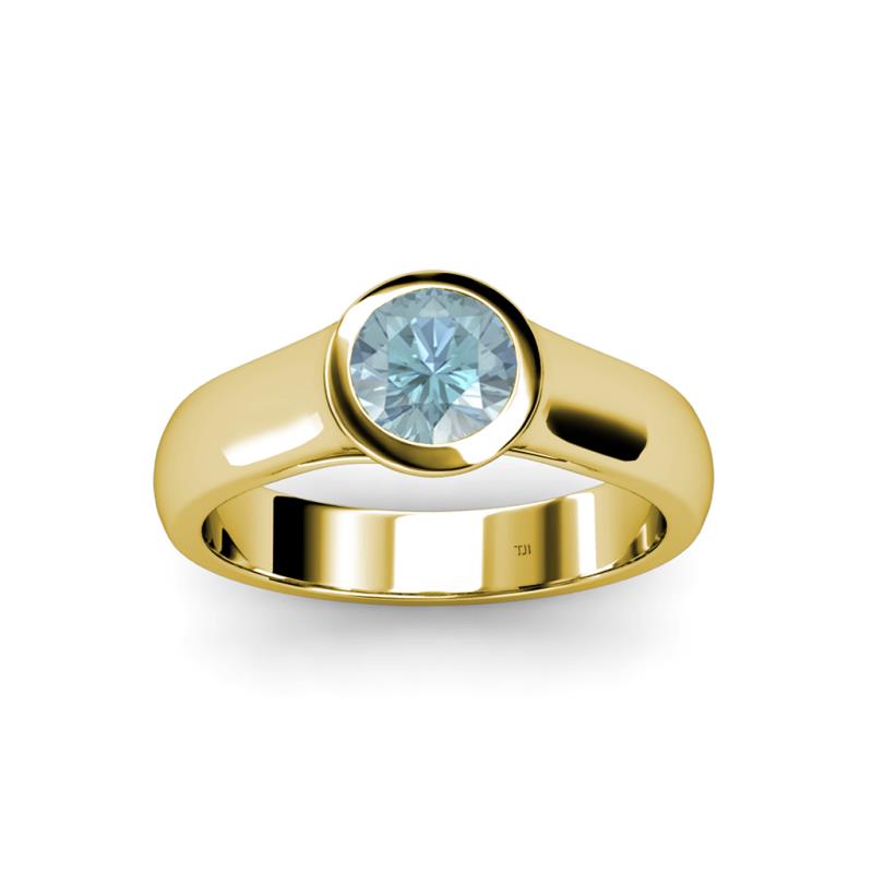 Aquamarine Womens Bezel Set Solitaire Engagement Ring 3/4 ct 14K Yellow Gold More Details ...