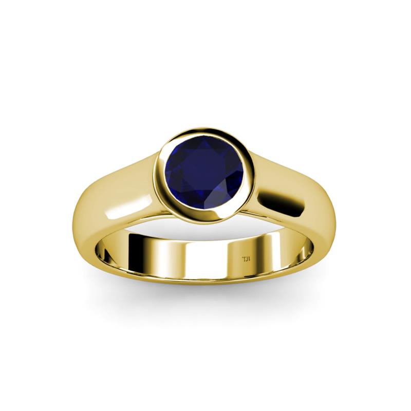 Blue Sapphire Womens Bezel Set Solitaire Engagement Ring 3/4 ct 18K Yellow Gold More Details ...