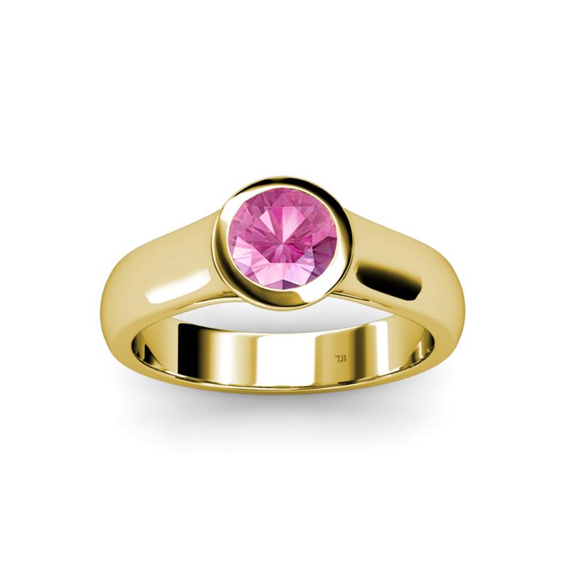 Pink Sapphire Womens Bezel Set Solitaire Engagement Ring 3/4 ct 18K Yellow Gold More Details ...