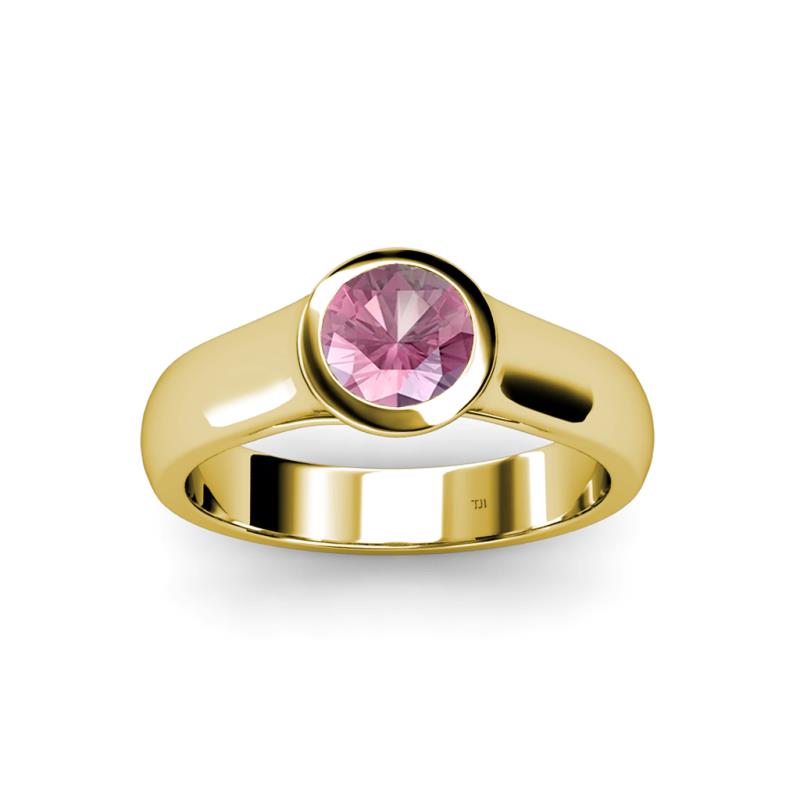 Pink Tourmaline Womens Bezel Set Solitaire Engagement Ring 3/4 ct 14K Yellow Gold More Details ...
