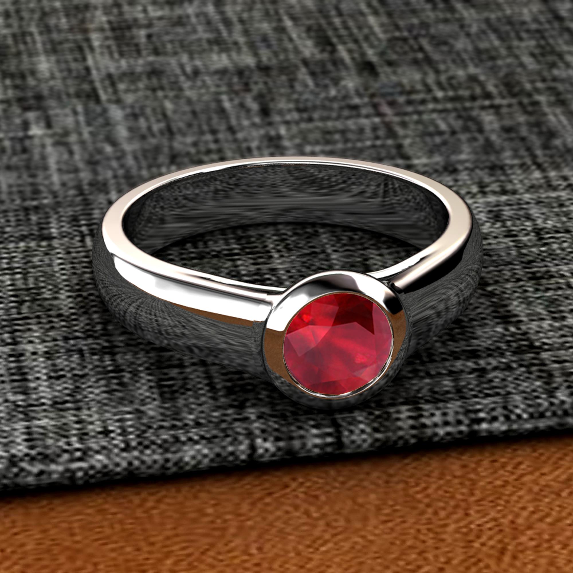 The true beauty of this Solitaire Engagement Ring in which the Bezel Setting beautifully complements the Center Ruby making it a perfect Ring for women with a classic and sophisticated style.