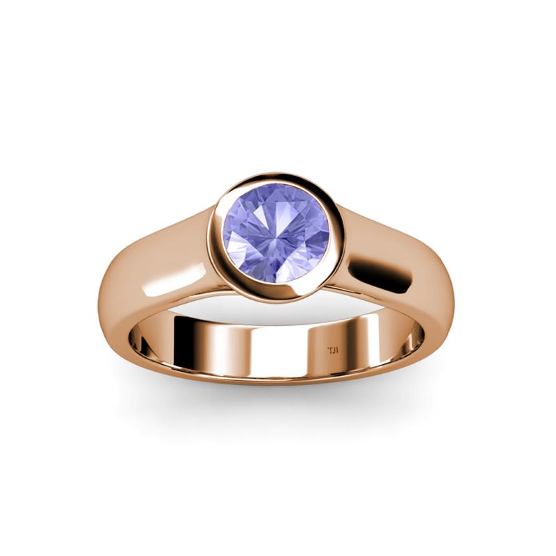 Tanzanite Womens Bezel Set Solitaire Engagement Ring 3/4 ct 18K Rose Gold More Details ...