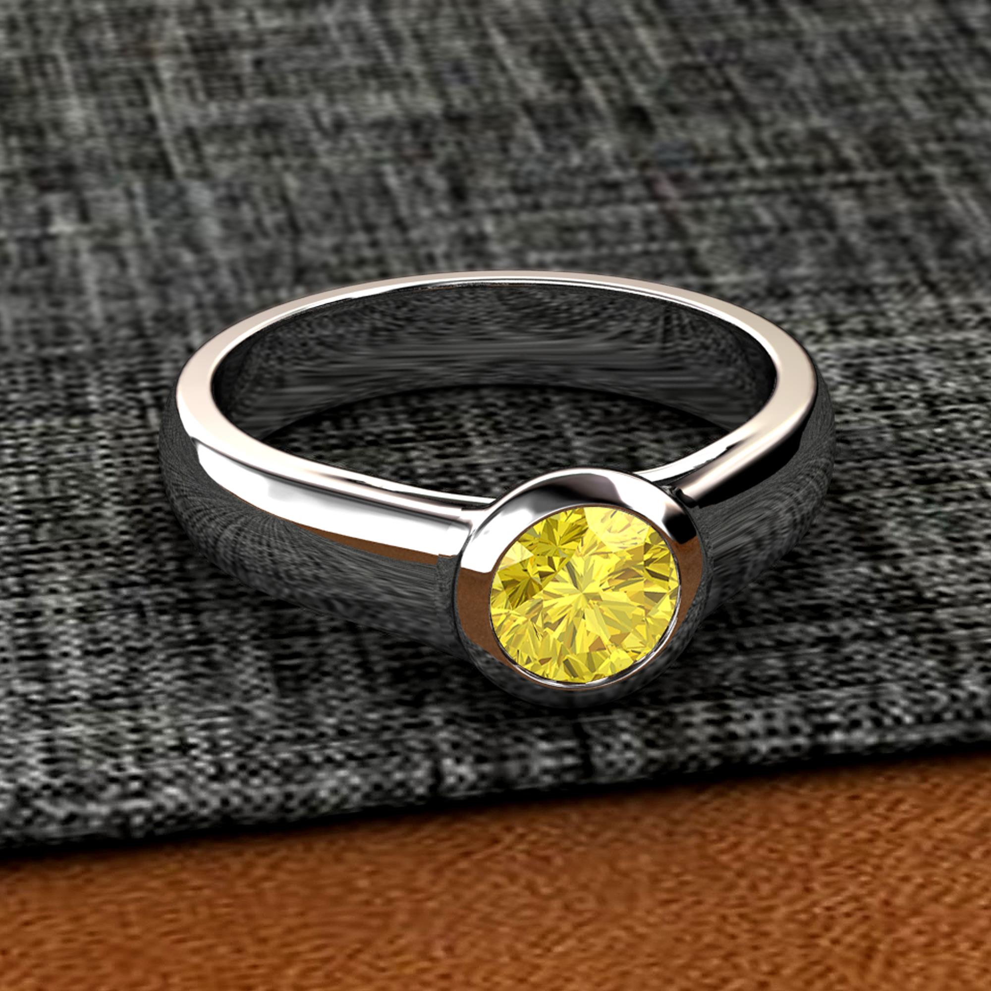 Yellow Sapphire Womens Bezel Set Solitaire Engagement Ring 3/4 ct 18K White Gold More Details ...
