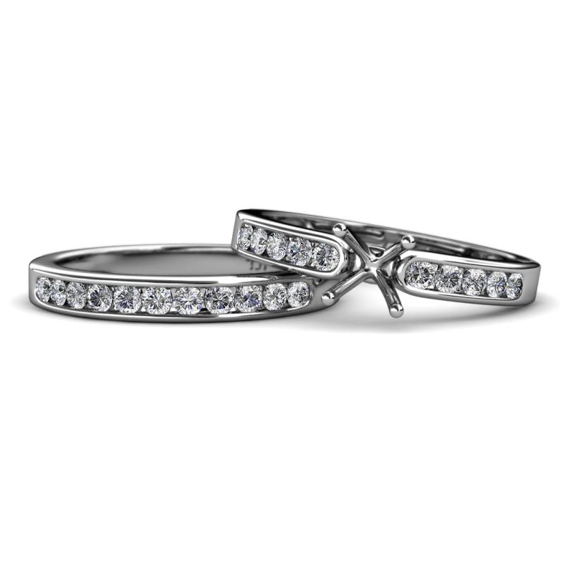Diamond Four Prong Semi Mount Engagement Ring Setting & Matching Diamond Band 1.05 ctw 18K White Gold More Details ...