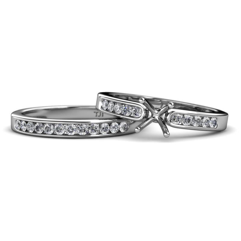 Diamond Four Prong Semi Mount Engagement Ring Setting & Matching Diamond Band 0.66 ctw 18K White Gold More Details ...