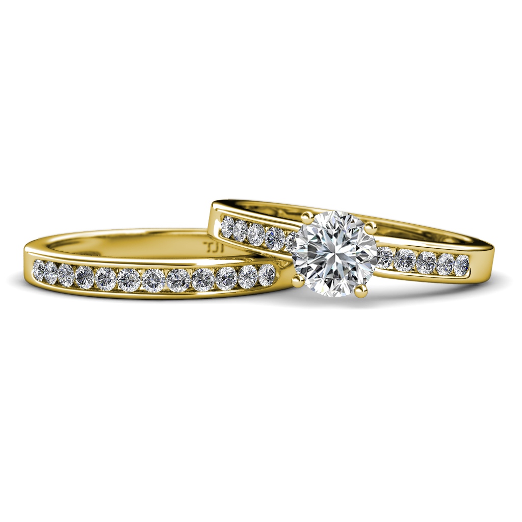 Diamond Four Prong Semi Mount Engagement Ring Setting & Matching Diamond Band 0.66 ctw 18K Yellow Gold More Details ...