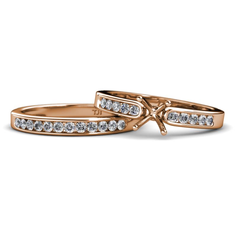 • Four Prong Semi Mount Engagement Ring & Wedding Band in 14K Rose Gold.