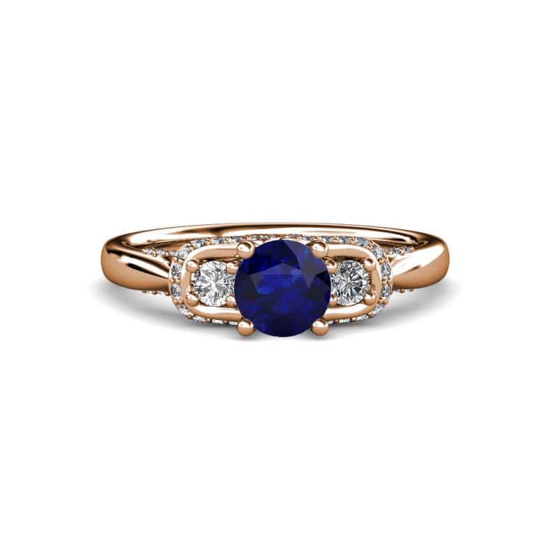 Blue Sapphire and Diamond Womens Three Stone Engagement Ring 1.55 ctw 14K Rose Gold More Details ...