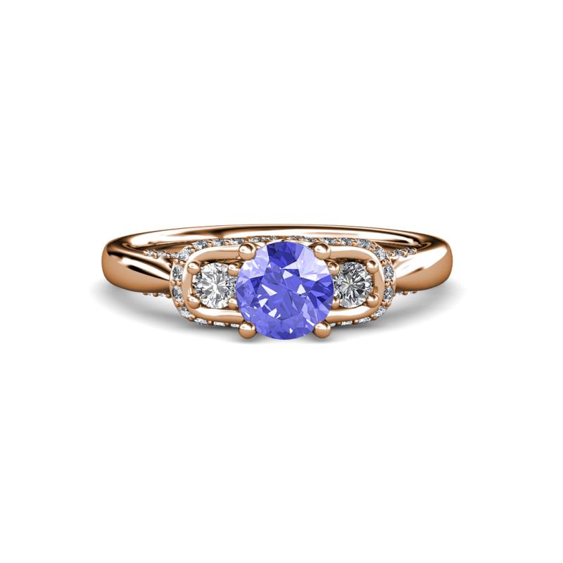 Tanzanite and Diamond Womens Three Stone Engagement Ring 1.52 ctw 14K Rose Gold More Details ...