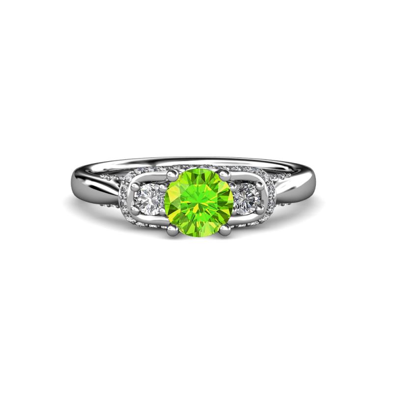 Peridot and Diamond Womens Three Stone Engagement Ring 1.70 ctw 18K White Gold More Details ...