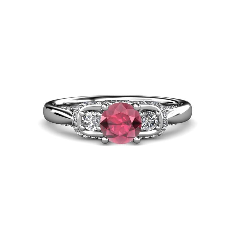 Rhodolite Garnet and Diamond Womens Three Stone Engagement Ring 1.60 ctw 18K White Gold More Details ...