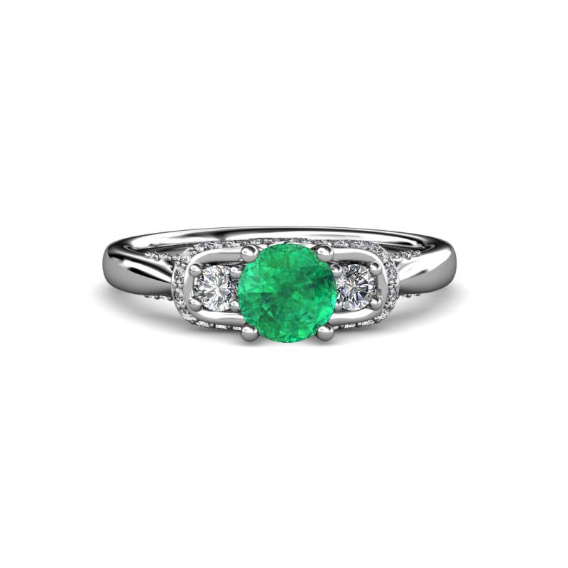 Emerald and Diamond Womens Three Stone Engagement Ring 1.35 ctw 18K White Gold More Details ...
