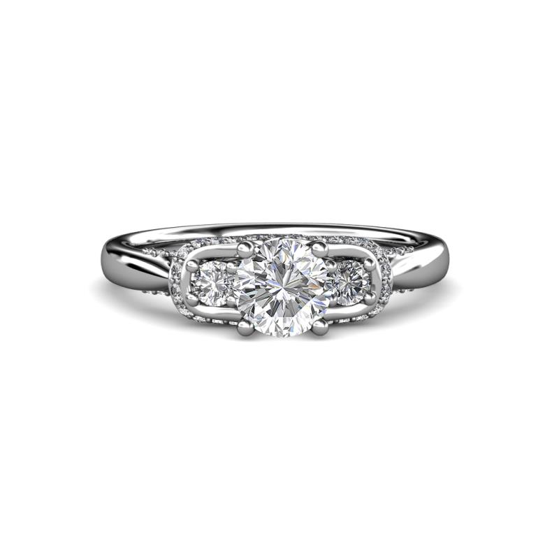 Diamond Womens Three Stone Engagement Ring with Diamond on Side Bar 1.60 ctw 18K White Gold More Details ...