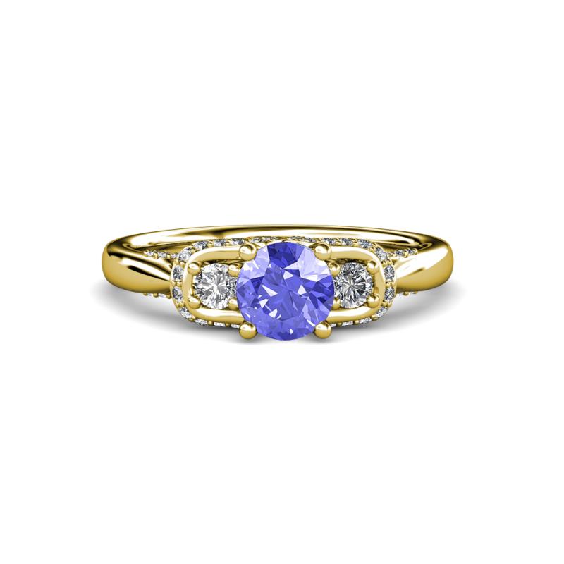Tanzanite and Diamond Womens Three Stone Engagement Ring 1.52 ctw 18K Yellow Gold More Details ...