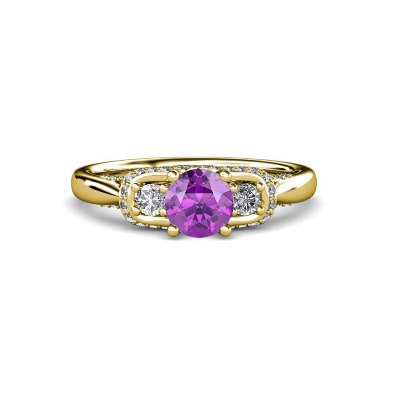 Amethyst and Diamond Womens Three Stone Engagement Ring 1.55 ctw 18K Yellow Gold More Details ...
