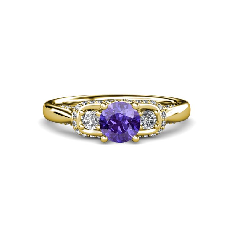 Iolite and Diamond Womens Three Stone Engagement Ring 1.55 ctw 18K Yellow Gold More Details ...