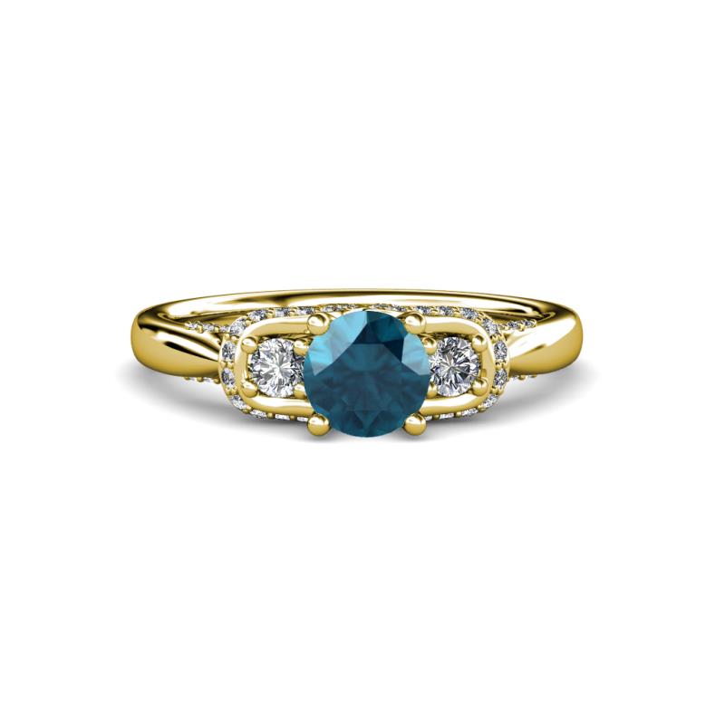 London Blue Topaz and Diamond Womens Three Stone Engagement Ring 1.65 ctw 18K Yellow Gold More Details ...