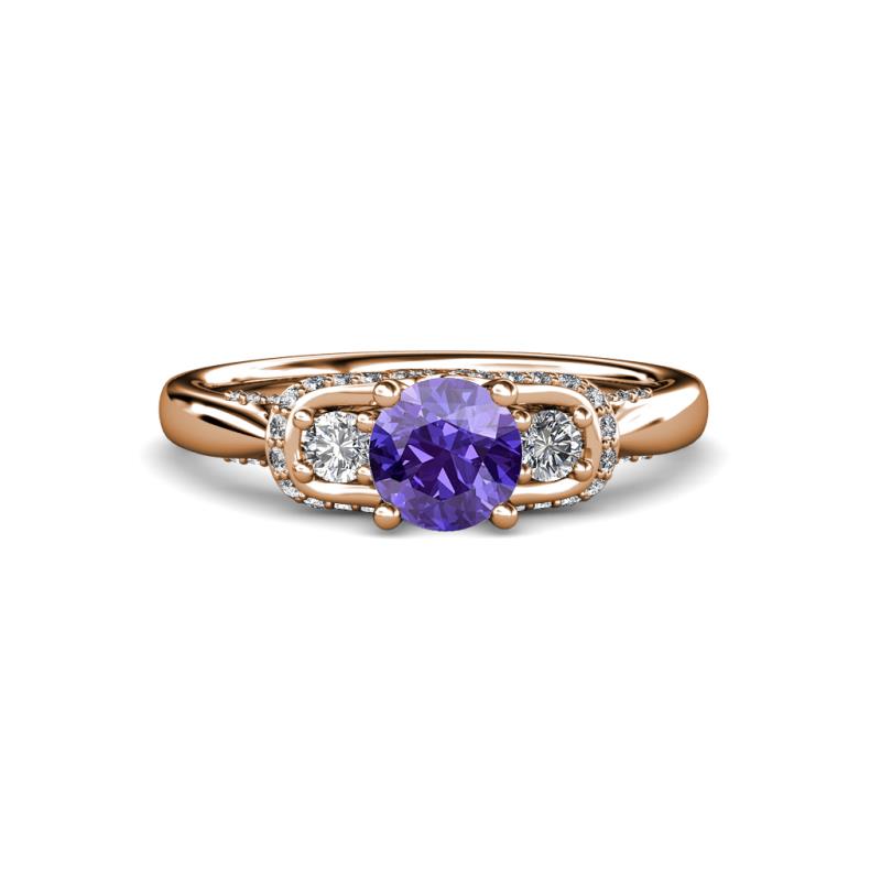 Iolite and Diamond Womens Three Stone Engagement Ring 1.55 ctw 18K Rose Gold More Details ...