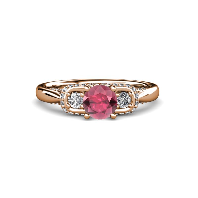 Rhodolite Garnet and Diamond Womens Three Stone Engagement Ring 1.60 ctw 18K Rose Gold More Details ...