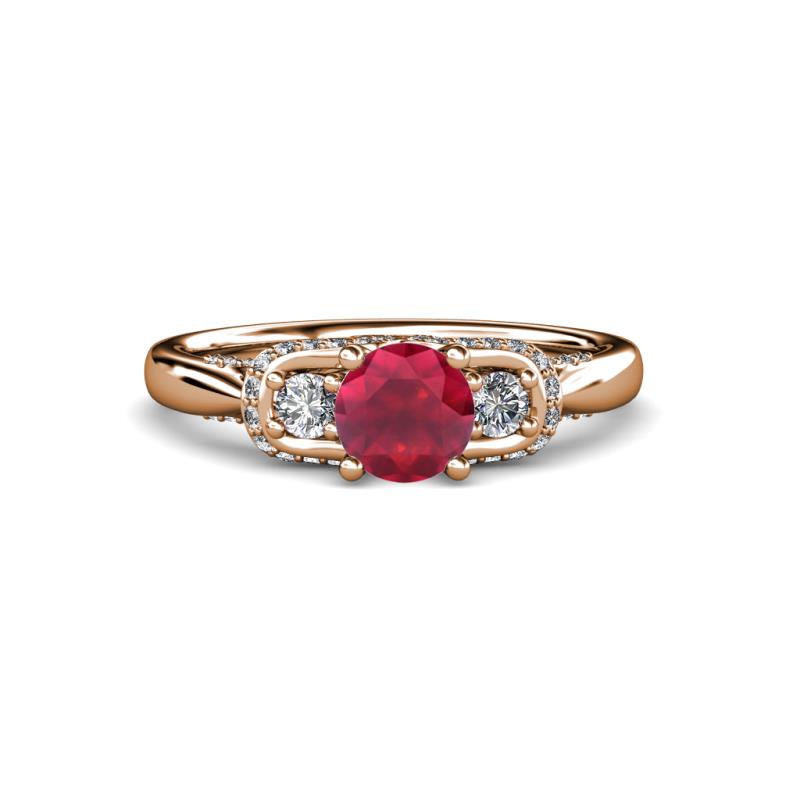 Ruby and Diamond Womens Three Stone Engagement Ring 1.55 ctw 18K Rose Gold More Details ...
