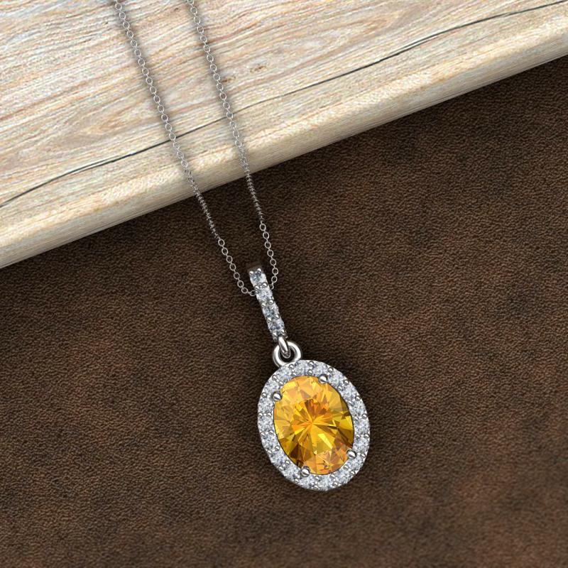 The sparkling Halo of Round Diamond surrounds the Center Oval Cut Citrine completing this adorable Pendant with Cable Chain which becomes an ideal for any and every occasion.
