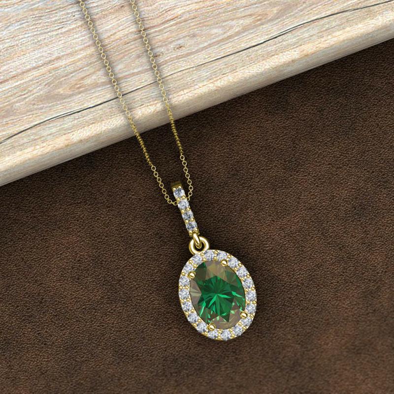 Oval Cut (8x6 mm) Lab Created Alexandrite and Round Diamond 1 3/4 ctw Womens Halo Pendant Necklace 14K Yellow Gold.Included 16 Inches 14K Yellow Gold Chain More Details ...